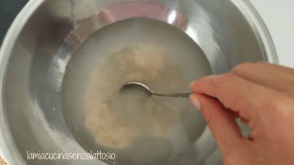 Per prima cosa bisogna preparare un lievitino sciogliendo in una ciotola acqua (ad un temperatura di circa 20°), miele e lievito