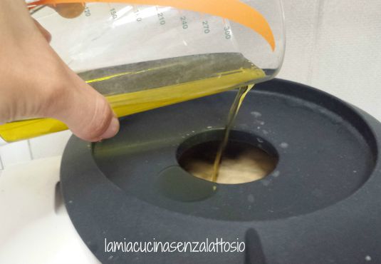 Ottenuto un impasto omogeneo bisogna incorporare il sale e piano piano l’olio evo e poi di semi a più riprese, assicurandosi che venga assorbito per bene dall’impasto prima di aggiungerne dell’ altro.