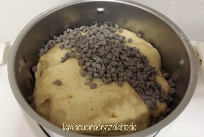 Riprendere l’impasto, unire alle gocce di cioccolato assicurandosi che si amalgamino per bene e formare delle palline con le mani, avendo cura di posizionarle sulla placca da forno ad una distanza tale da permettere la lievitazione.