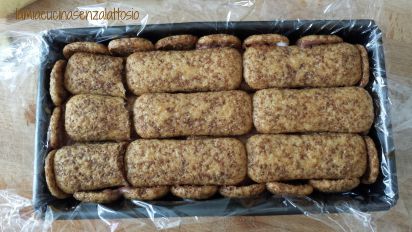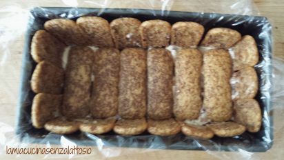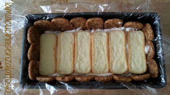 Ricoprire con uno strato di Pavesini NON imbevuto di caffè.