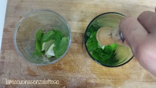 Versare nel bicchiere il miele, la menta ed il lime e schiacciare il tutto con un pestello.