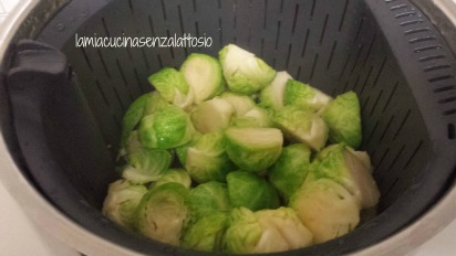 Pulire i cavoletti e cuocerli a vapore per 9 min