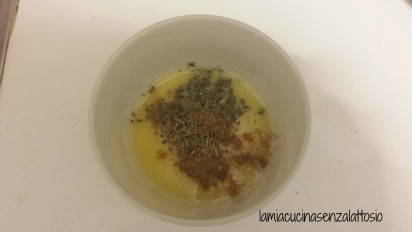 Fondere il burro e mescolarlo con le erbette tritate fini (più ne mettete più aroma daranno)