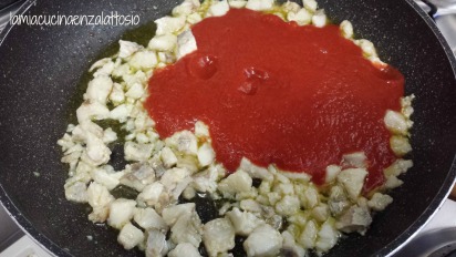 Aggiungere il passato di pomodori e cuocere per una decina di minuti