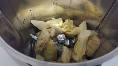 Frullare i carciofini con un pò del loro olio fino ad ottenere una patè spalmabile