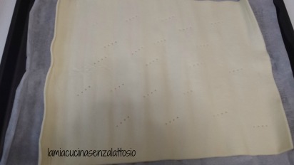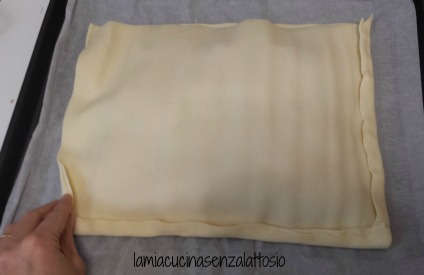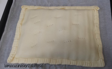 Ricoprire con l’altro rotolo di pasta sfoglia e ripiegarne i bordi
