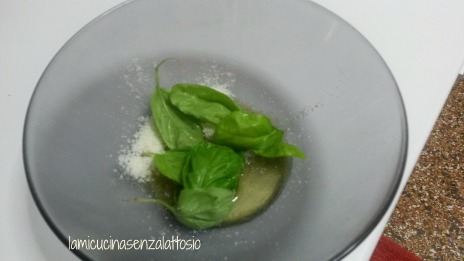 Frullarli in un mix con le foglie di basilico lavate ed asciugate, il Parmigiano, un pzc di sale ed olio a filo fino ad ottenere la consistenza desiderata