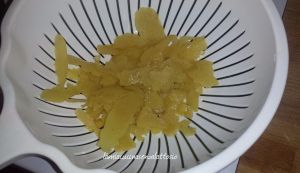 Trascorso questo tempo mettere a bollire l’acqua, ed una volta raggiunto il bollore, spegnere il fuoco ed aggiungere lo zucchero mescolando fino a completo assorbimento.