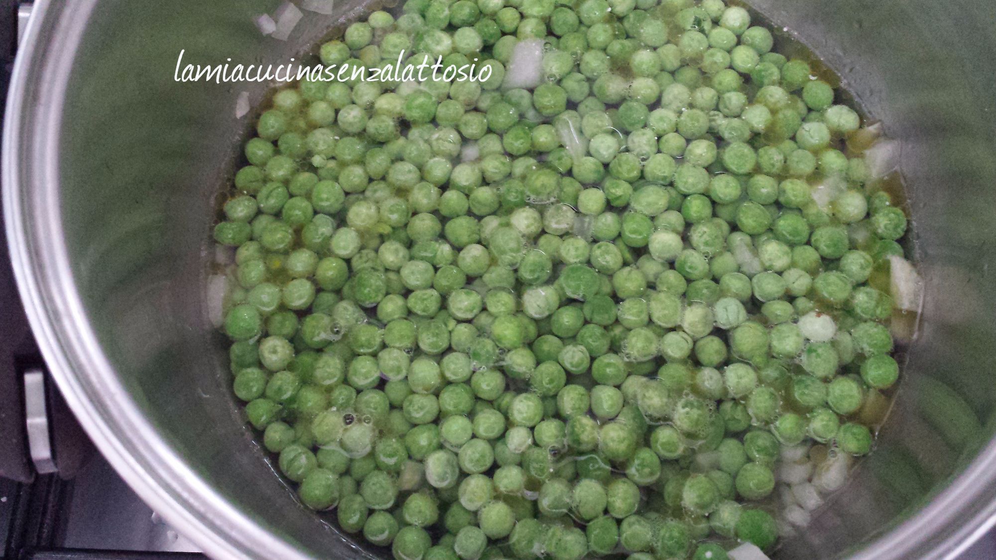 Far insaporire i piselli per qualche minuto (io ho usato quelli congelati)