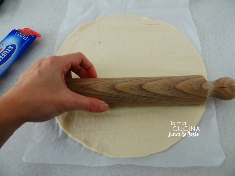 Srotolare la pasta pronta e, con un mattarello, allungarla leggermente in un solo verso.