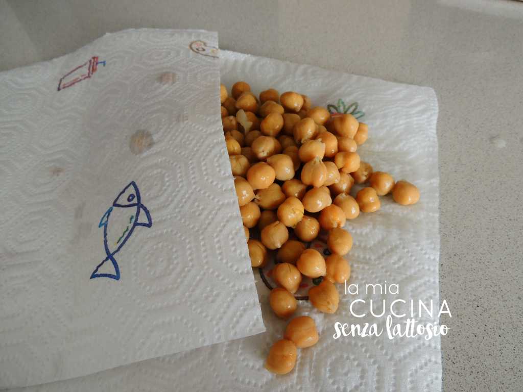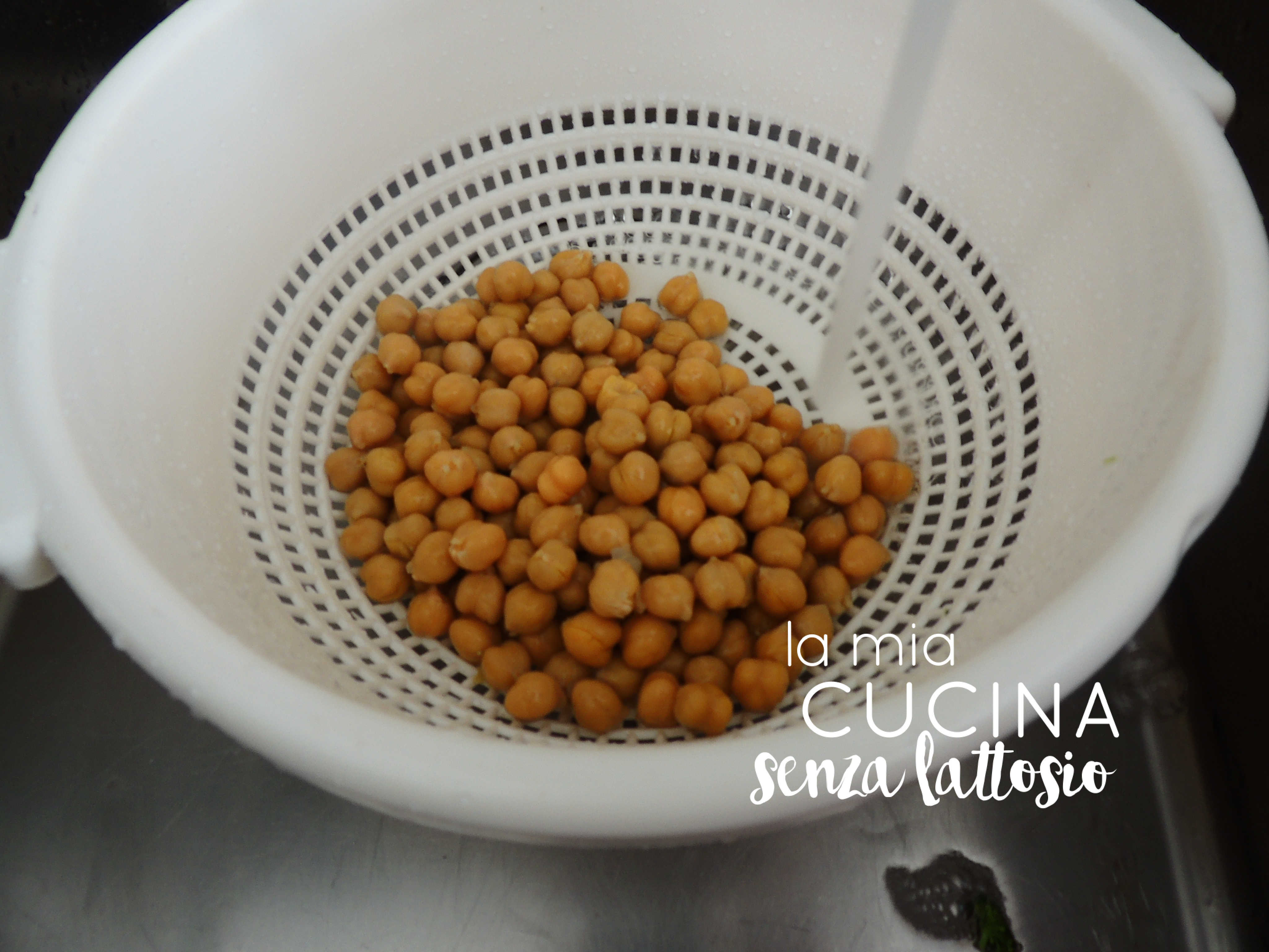 Scolare i ceci e sciacquarli per bene sotto l’acqua corrente