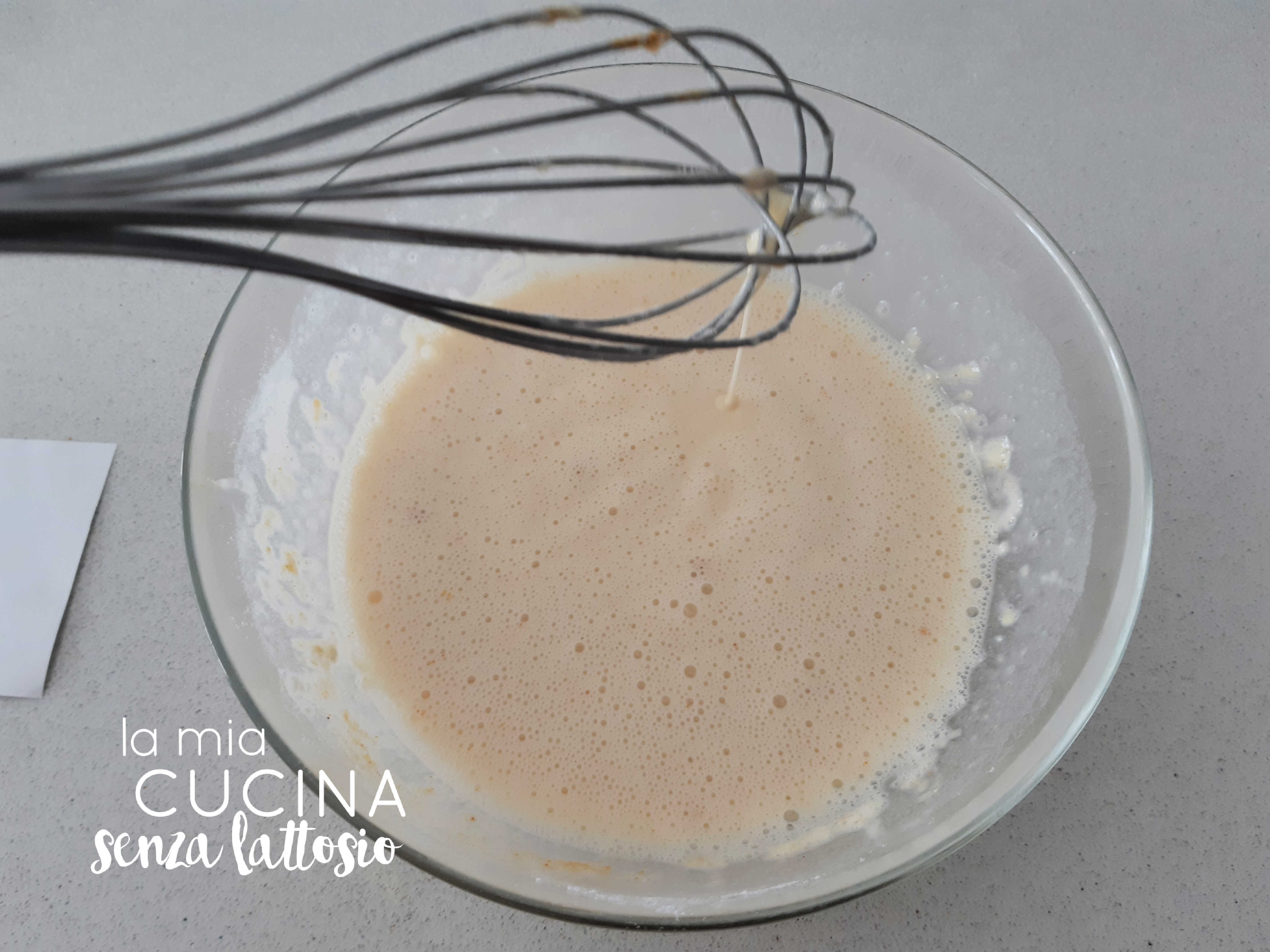 Mescolare tutti gli ingredienti fino ad ottenere una pastella omogenea senza grumi