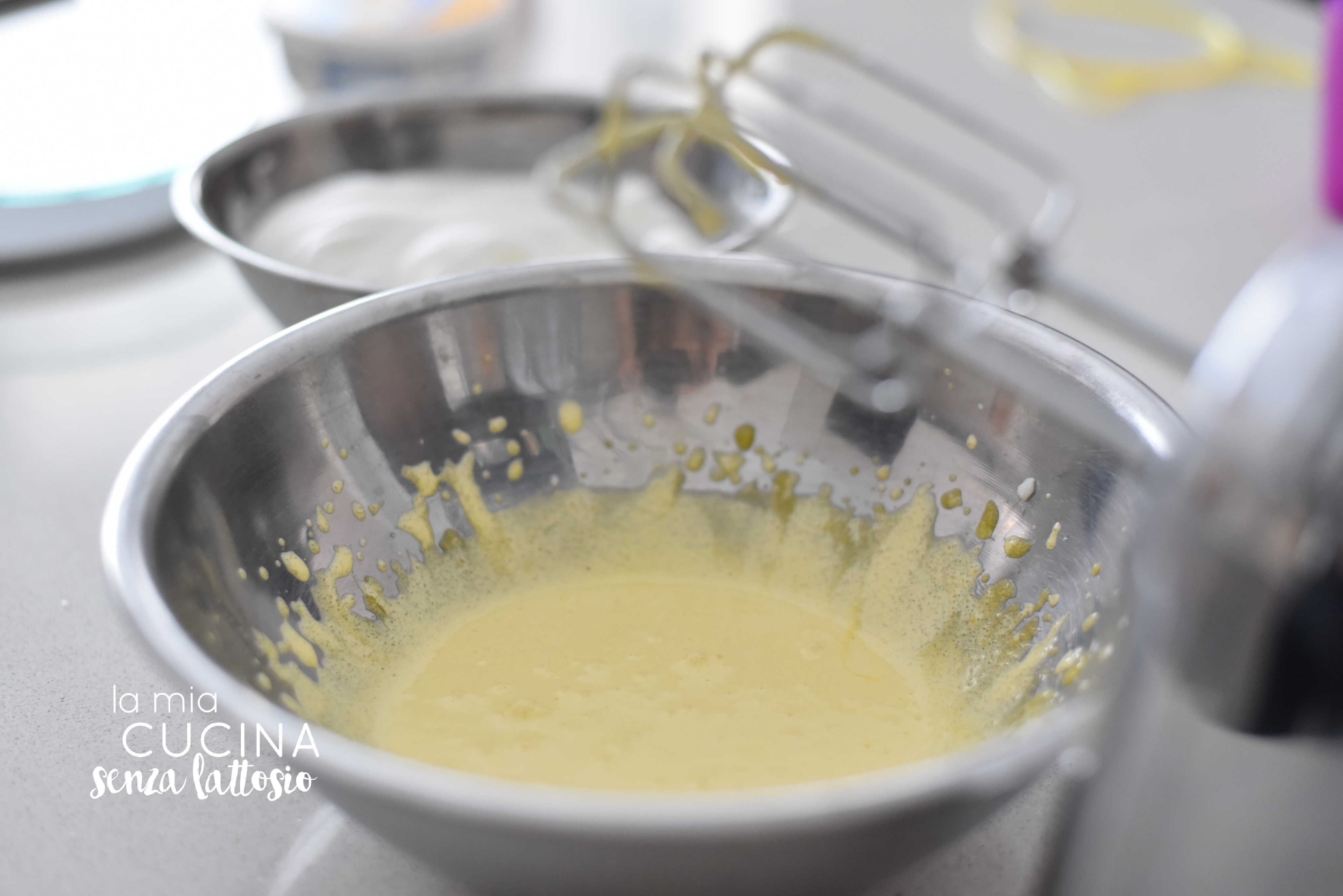 Unire lo zucchero ai tuorli e montare finchè non diventa una spuma