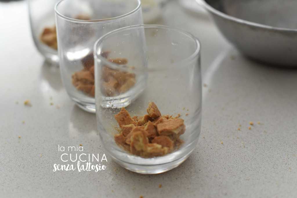 Sgretolare con le mani due biscotti per ogni bicchiere
