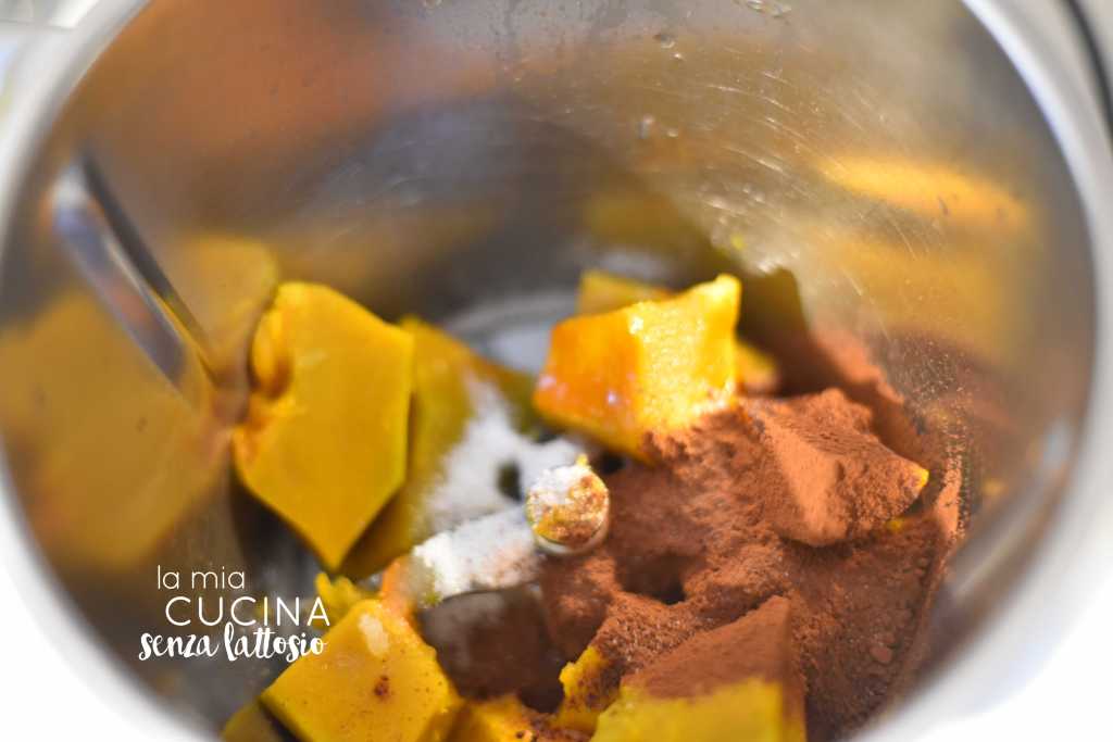 Pulire la zucca, tagliarla a cubetti, cuocerla a vapore per 15-20 min e poi frullarla insieme agli ingredienti per il ripieno fino a formare una crema.