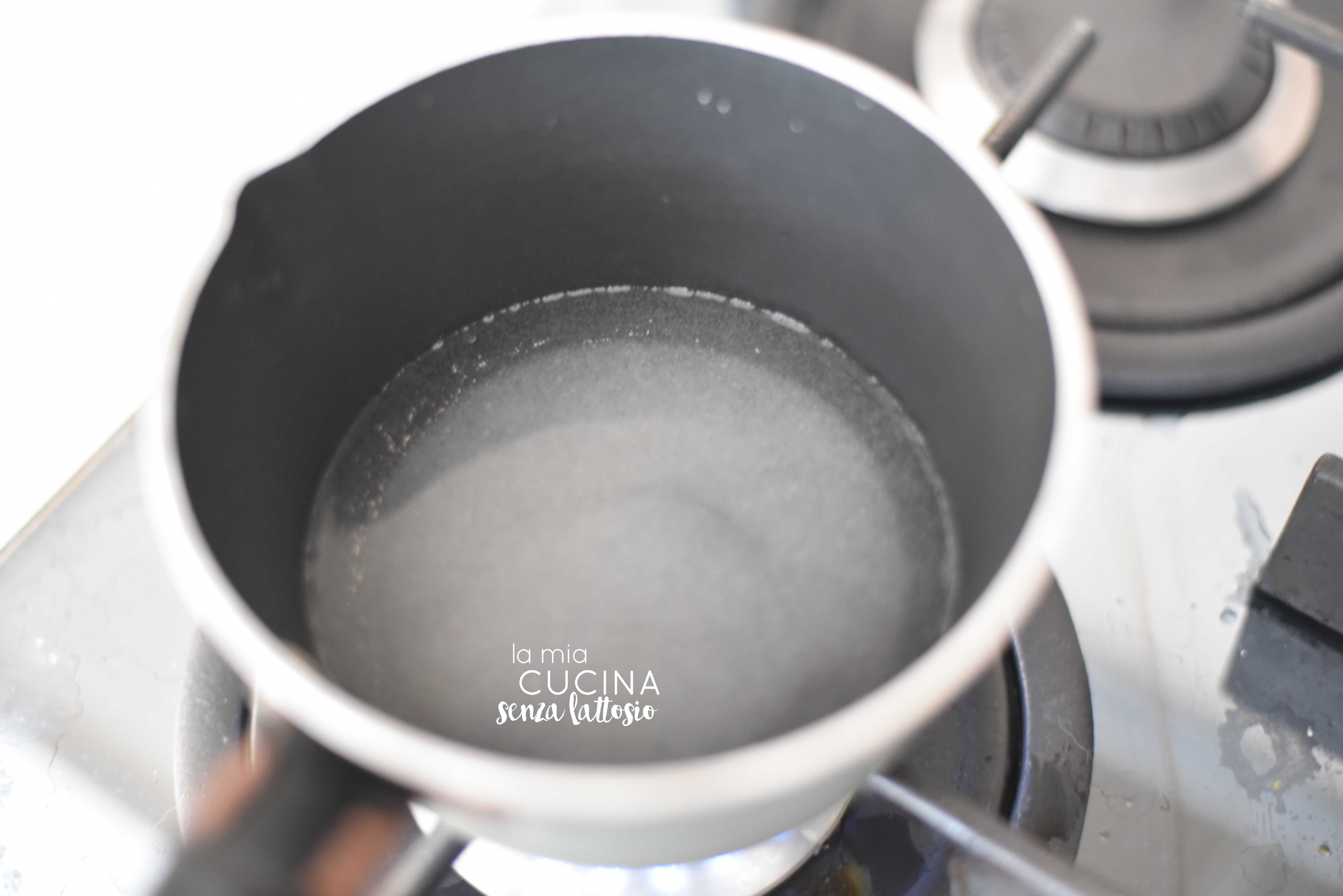 Portare a bollore acqua e zucchero fino a che non si rapprende