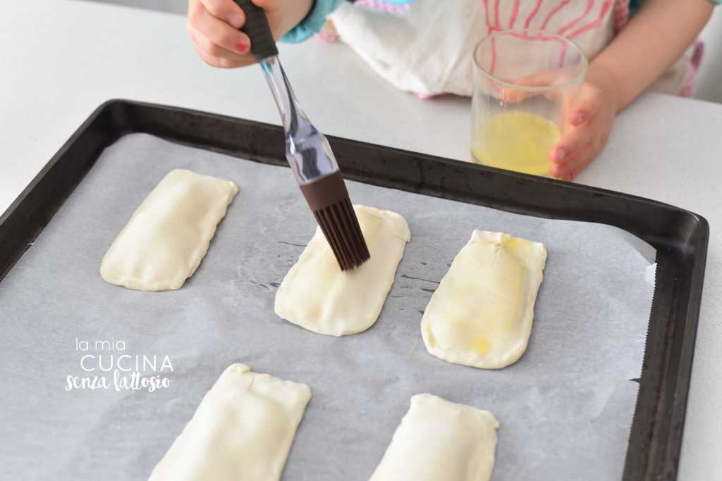 Spennellare la superficie con l’albume d’uovo avanzato.